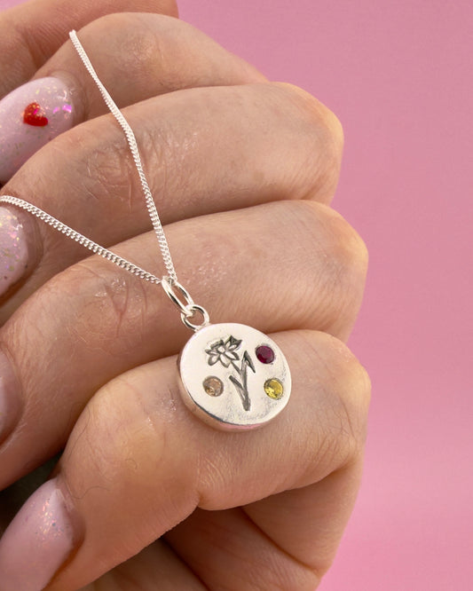 Hi, I’m Rhiannon! I make thoughtful, personalised jewellery, handmade from solid fine silver and colourful cubic zirconia gemstones, designed to last.