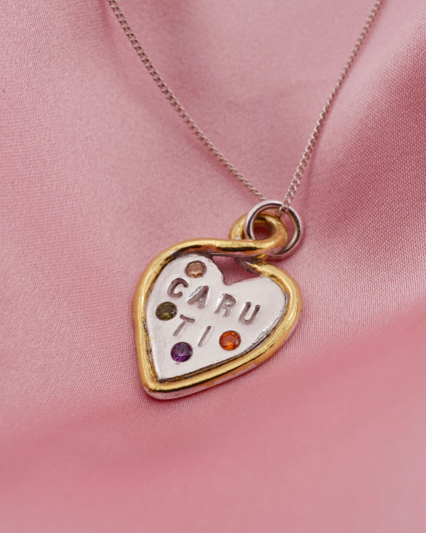 (Made to order) Mixed Metal Heart Loop Necklace - Solid Silver with Cubic Zirconia