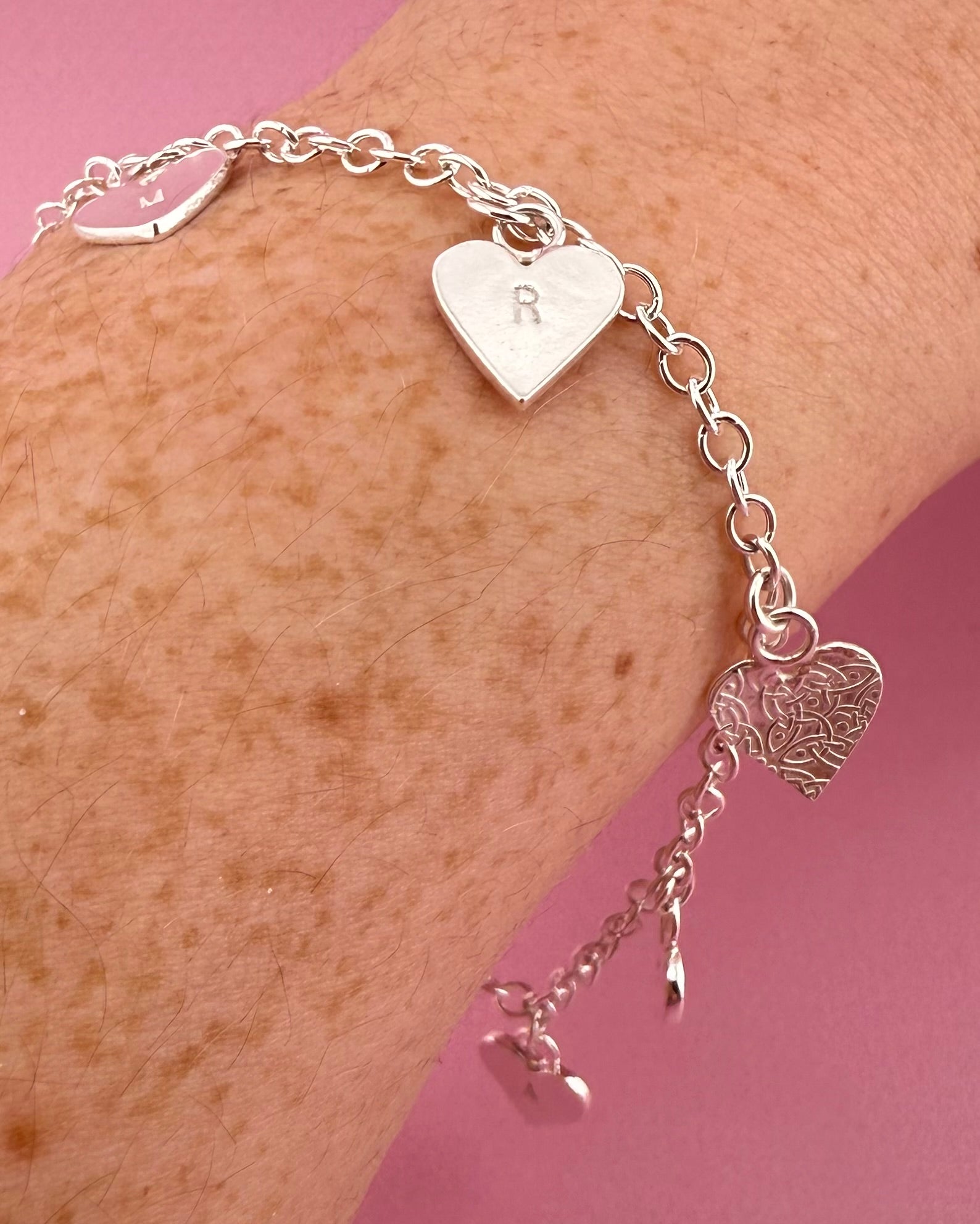 Build your own charm bracelet or necklace with these adorable love letter charms! Each one is handcrafted from solid fine silver, and you can choose your favourite design, whether that's colourful gems, a simple plain finish, or a textured Celtic knot or additional initial hidden on the back. A personal keepsake made just for you.