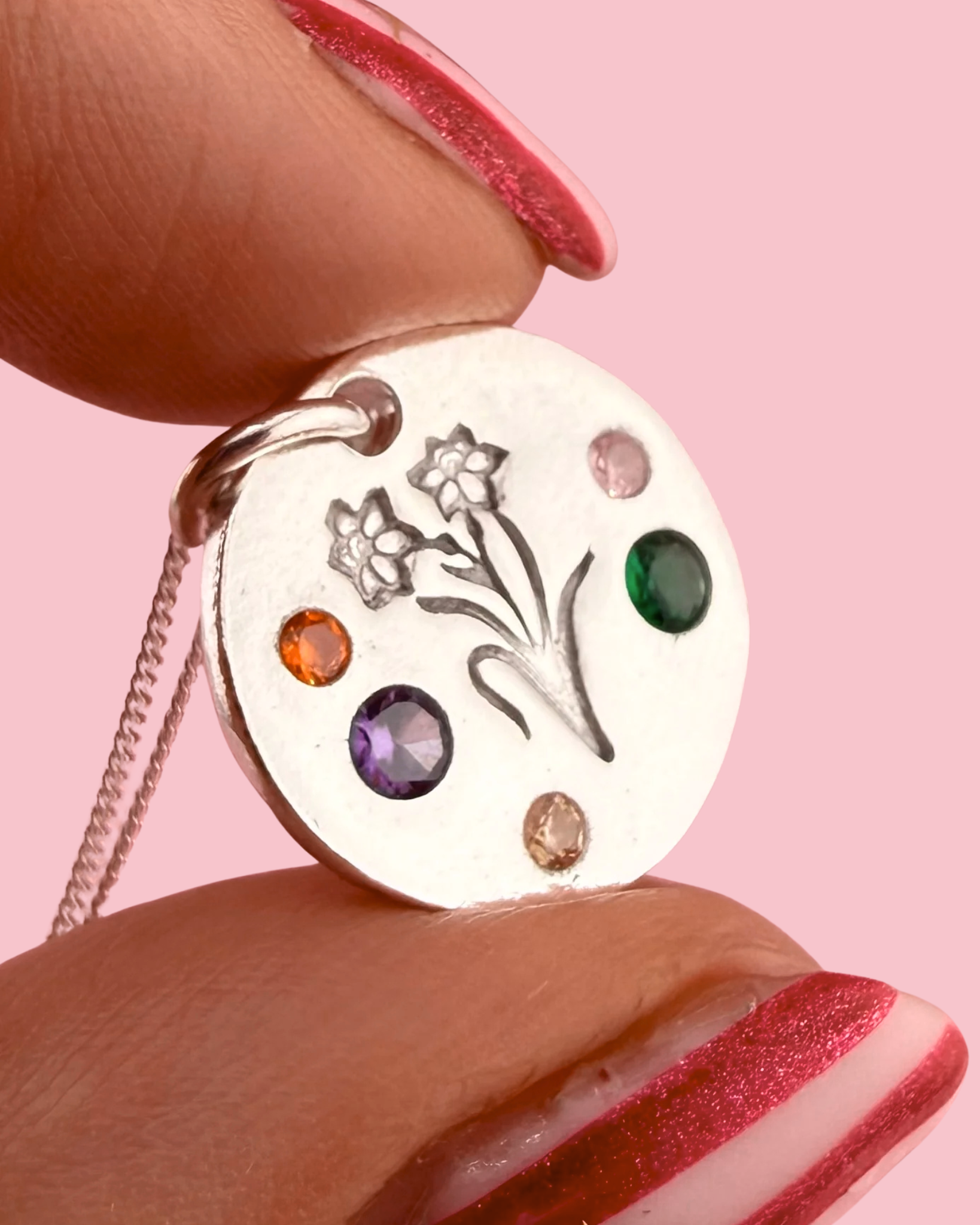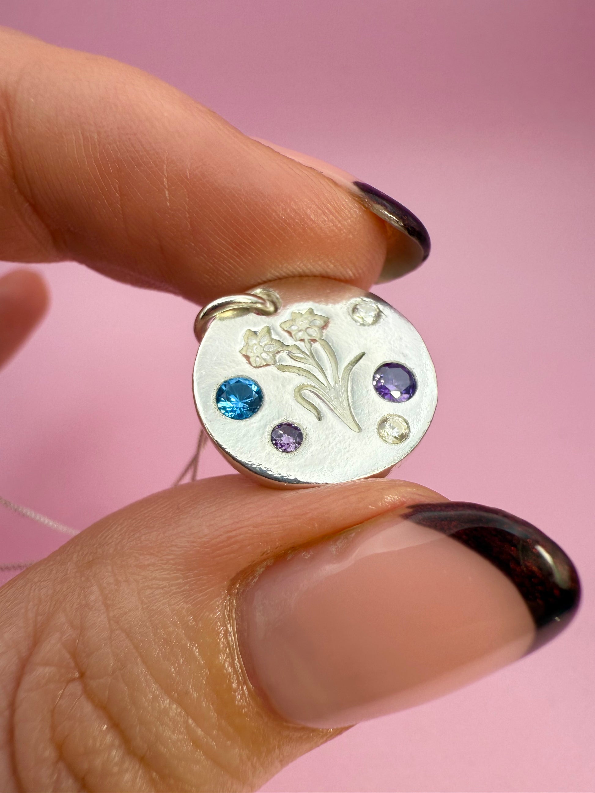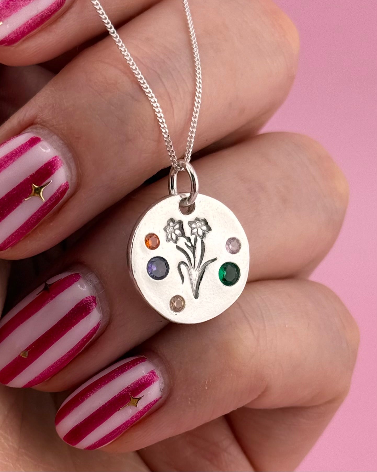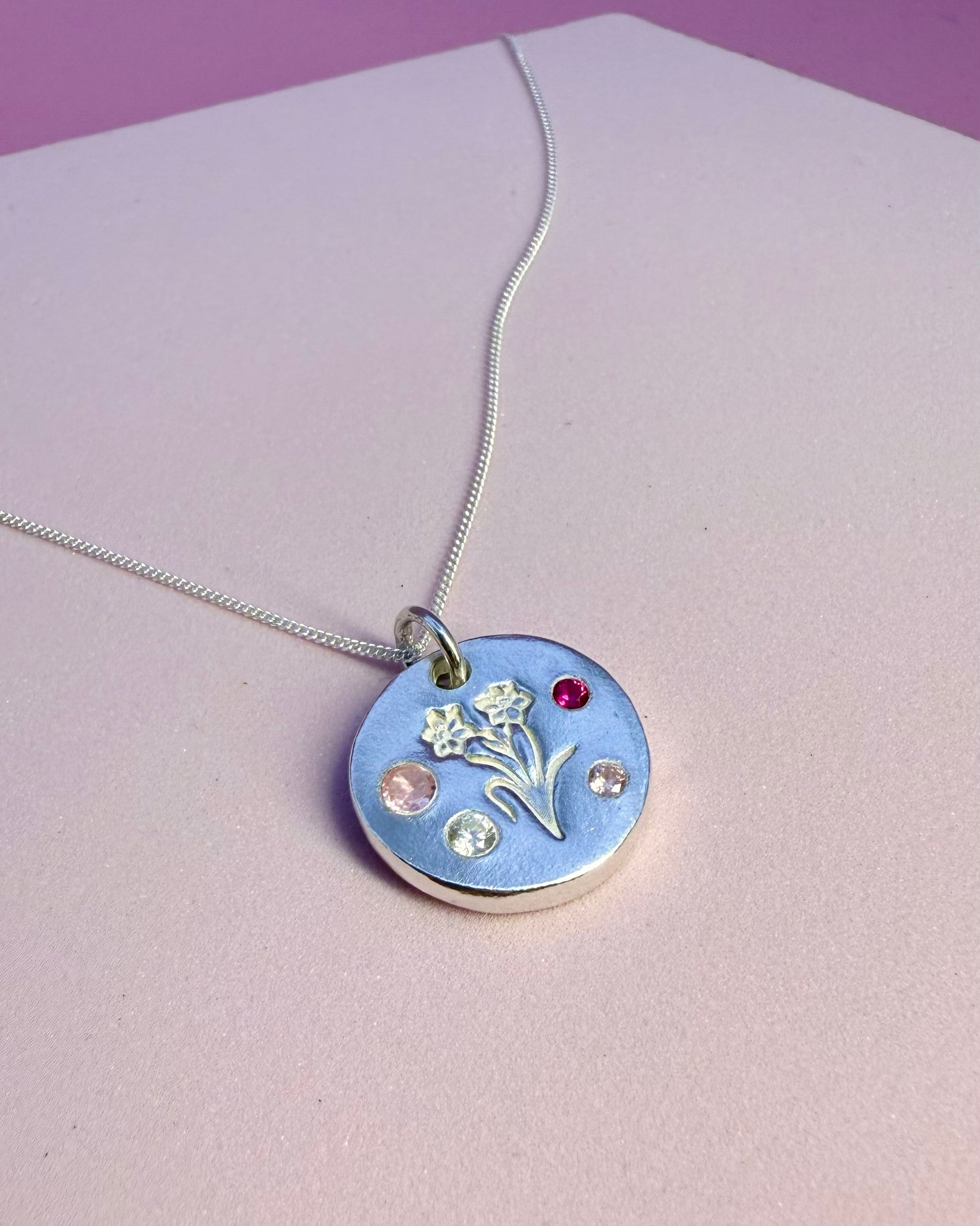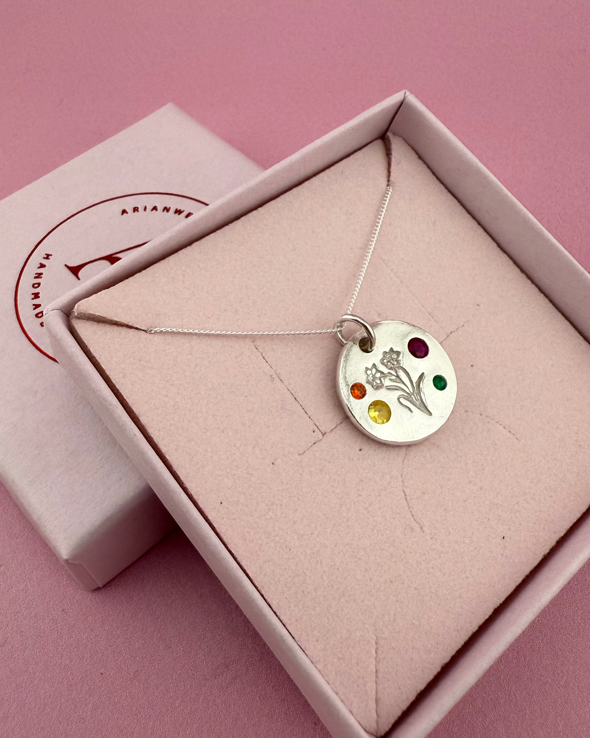 Celebrate your Welsh heritage with this colourful daffodil necklace, a beautifully handcrafted piece made from solid silver. Designed to last a lifetime, each necklace features vibrant cubic zirconia gemstones, adding a playful pop of colour to your jewellery collection. Since every piece is handmade, no two are exactly alike, making your necklace truly unique. Perfect as a Welsh gift, a personal keepsake, or a celebration of the Welsh language and culture.