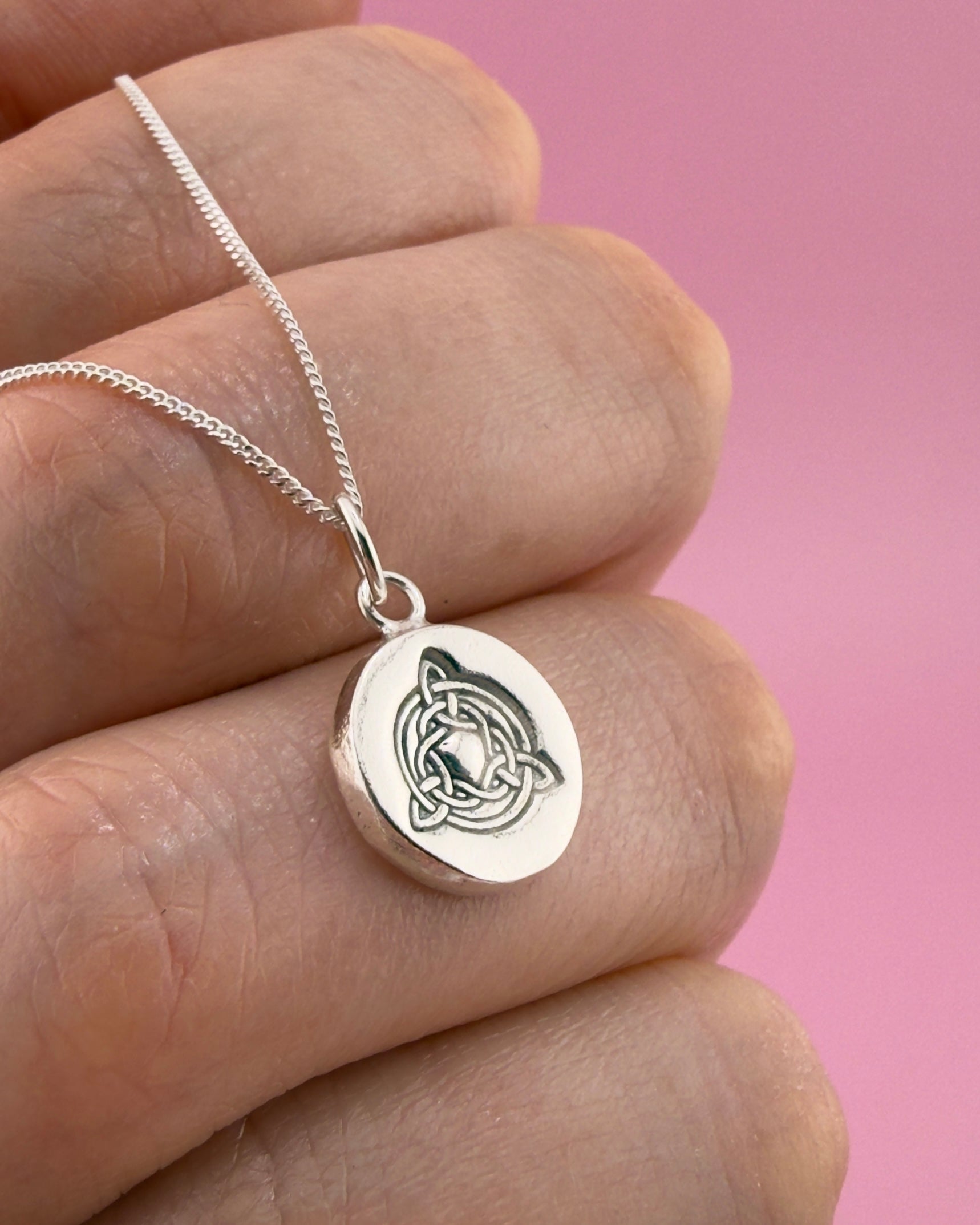 Celebrate your Welsh heritage with this Celtic Knot Pendant, a beautifully handcrafted piece made from solid silver. Handmade to last, each necklace features a detailed Celtic knot print, adding a touch of sparkle to your jewellery collection. Since every piece is handmade, no two are exactly alike, making your necklace truly unique. Perfect as a Welsh gift, a personal keepsake, or a celebration of the Welsh language and culture.