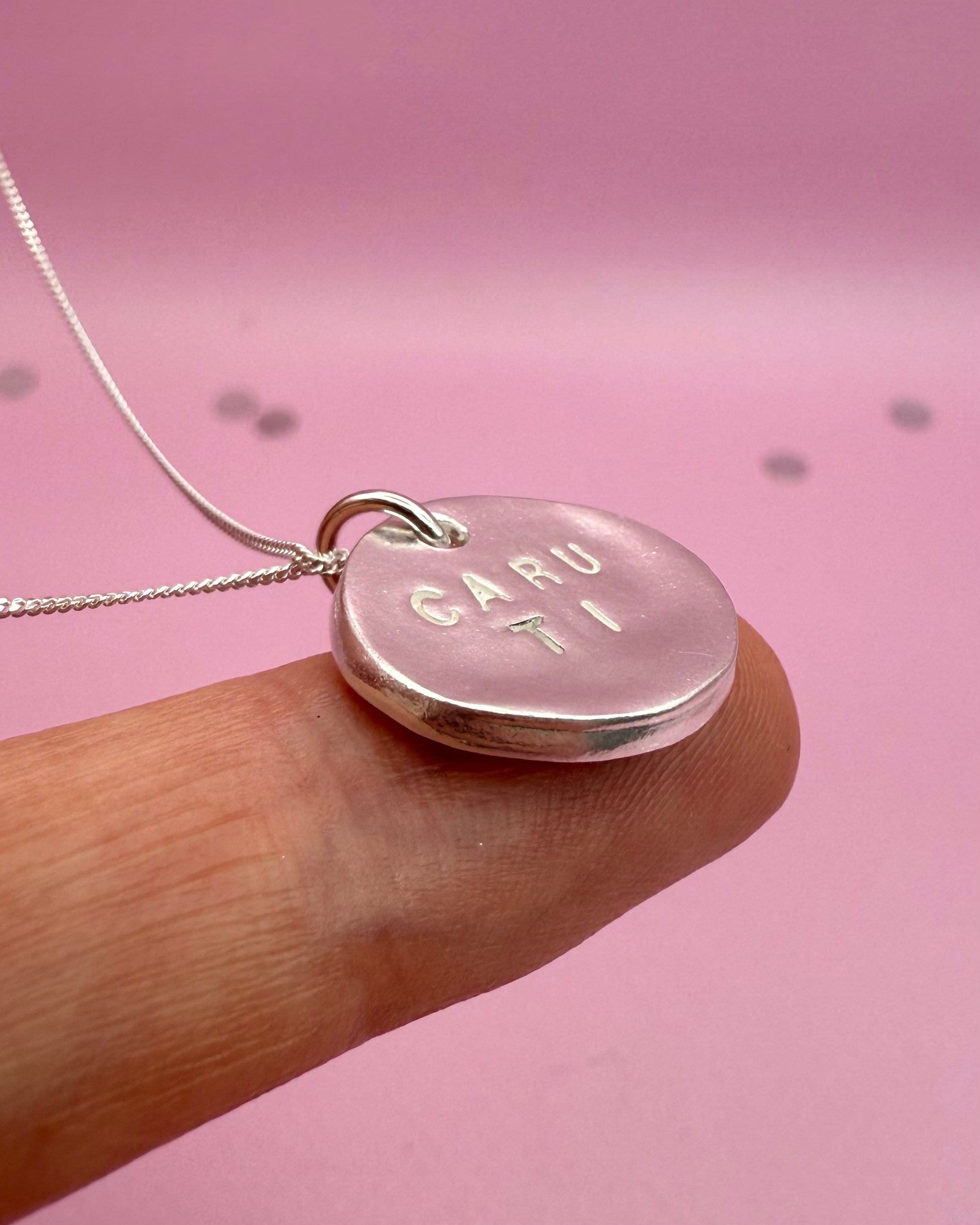 Please select the “with text on the back” option if you’d like a hidden message on the back of the pendant.