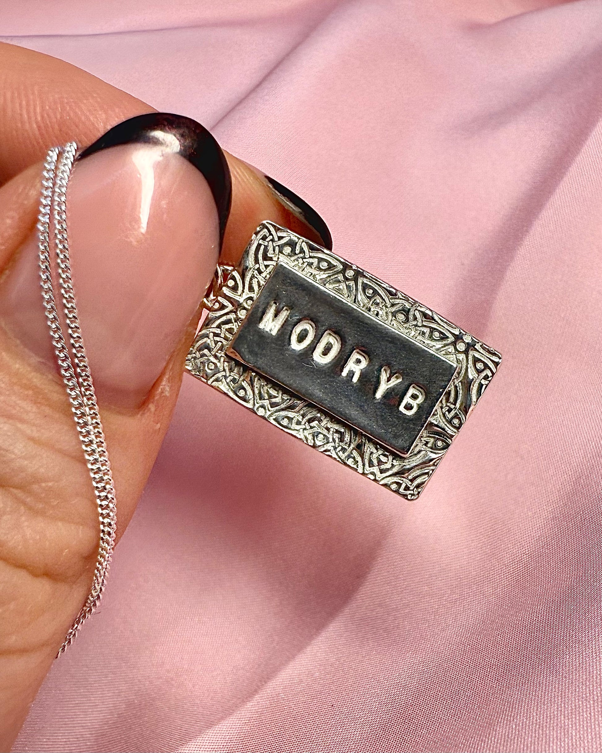 Celebrate your Welsh heritage with this Celtic Knot Pendant, a beautifully handcrafted piece made from solid silver. Designed to last a lifetime, each necklace features a detailed Celtic knot print, adding a touch of sparkle to your jewellery collection. Since every piece is handmade, no two are exactly alike, making your necklace truly unique. Perfect as a Welsh gift, a personal keepsake, or a celebration of the Welsh language and culture.